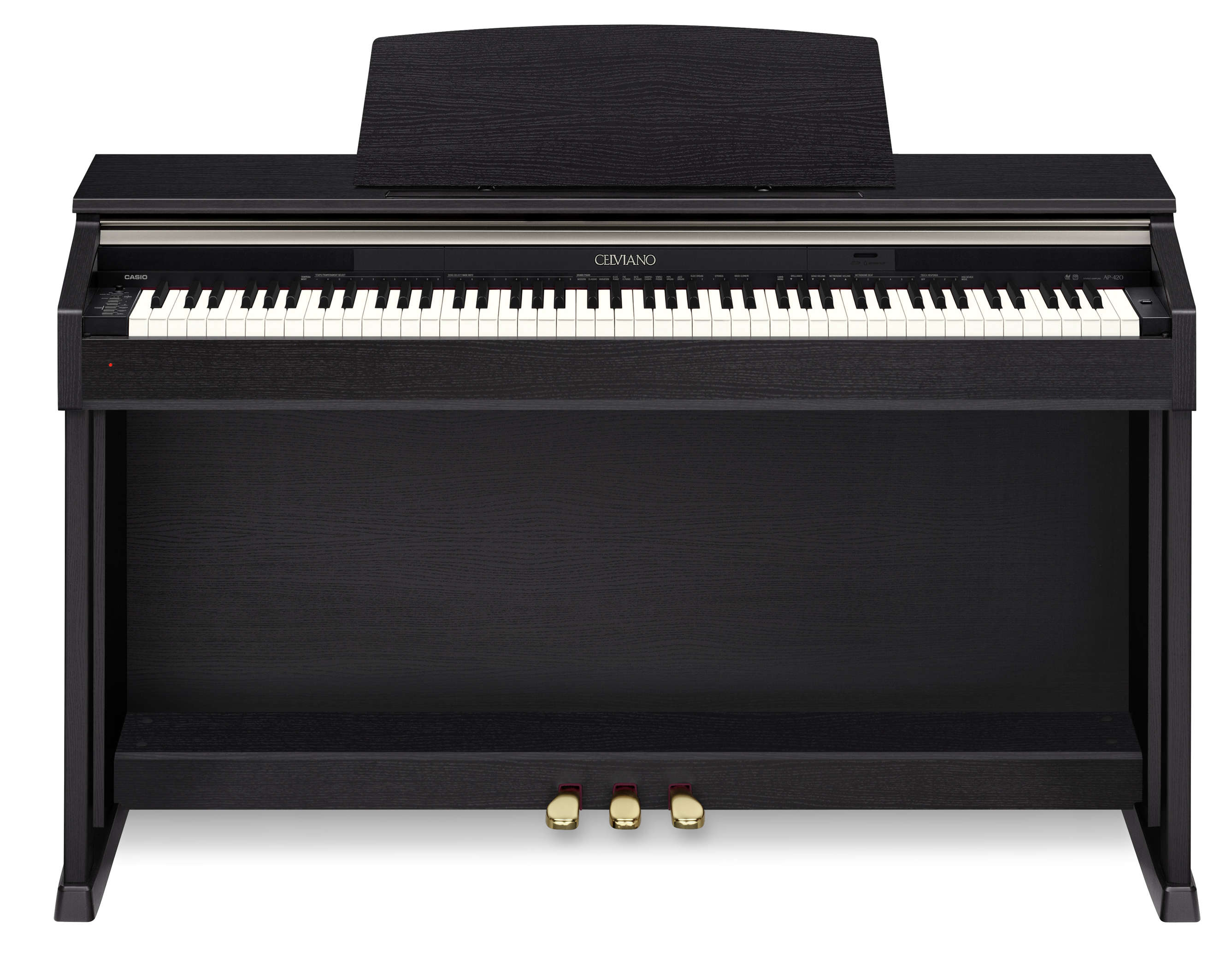 AP-650MBK The finest model in the | AP-450BK/WE/BN Superior piano quality | AP-250BK/BN The basic CELVIANO, | AP-6BP The 30th Anniversary Limited Edition. |